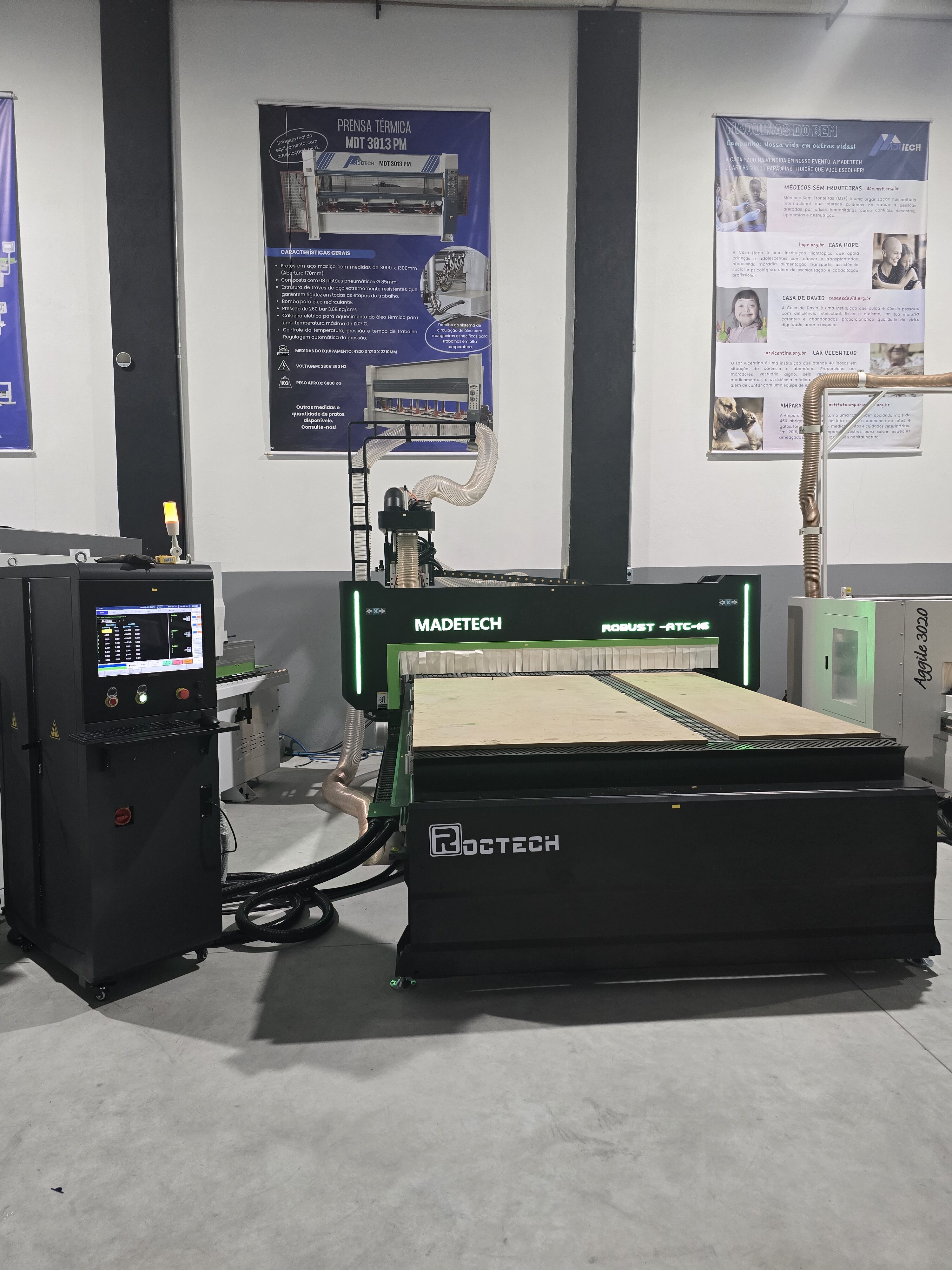 Precisão Excepcional: Com a programação precisa e automática, o equipamento Robust sistema Nesting da Madetech garante um alto