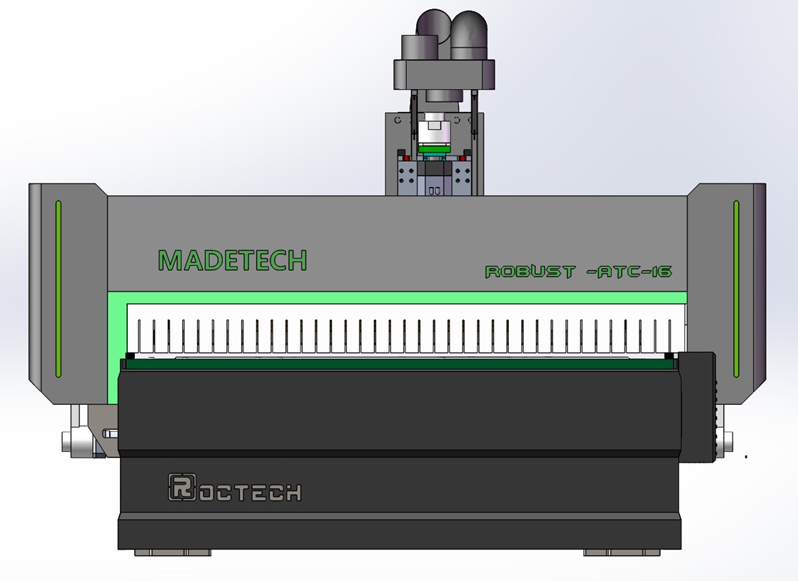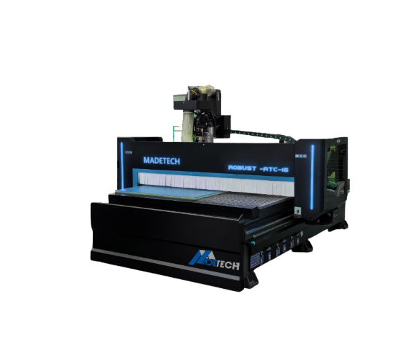 Apresentamos o equipamento Router CNC modelo Robust RC2030S ATC-16, com pré disposição para sistema de descarga automática, uma tecnologia avançada que combina precisão, velocidade e eficiência em um único equipamento. Se a sua empresa produz móveis diversificados, com planos de corte variados e você busca otimizar sua produção, reduzir custos e alcançar resultados superiores, o equipamento de usinagem modelo Robust é a escolha certa.