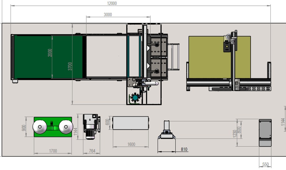 Área de trabalho 2000 mm x 3000 x 200 mm.