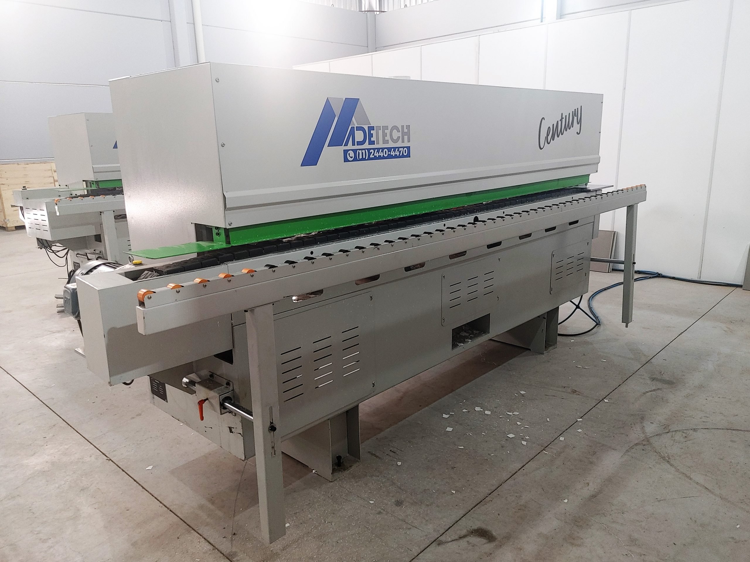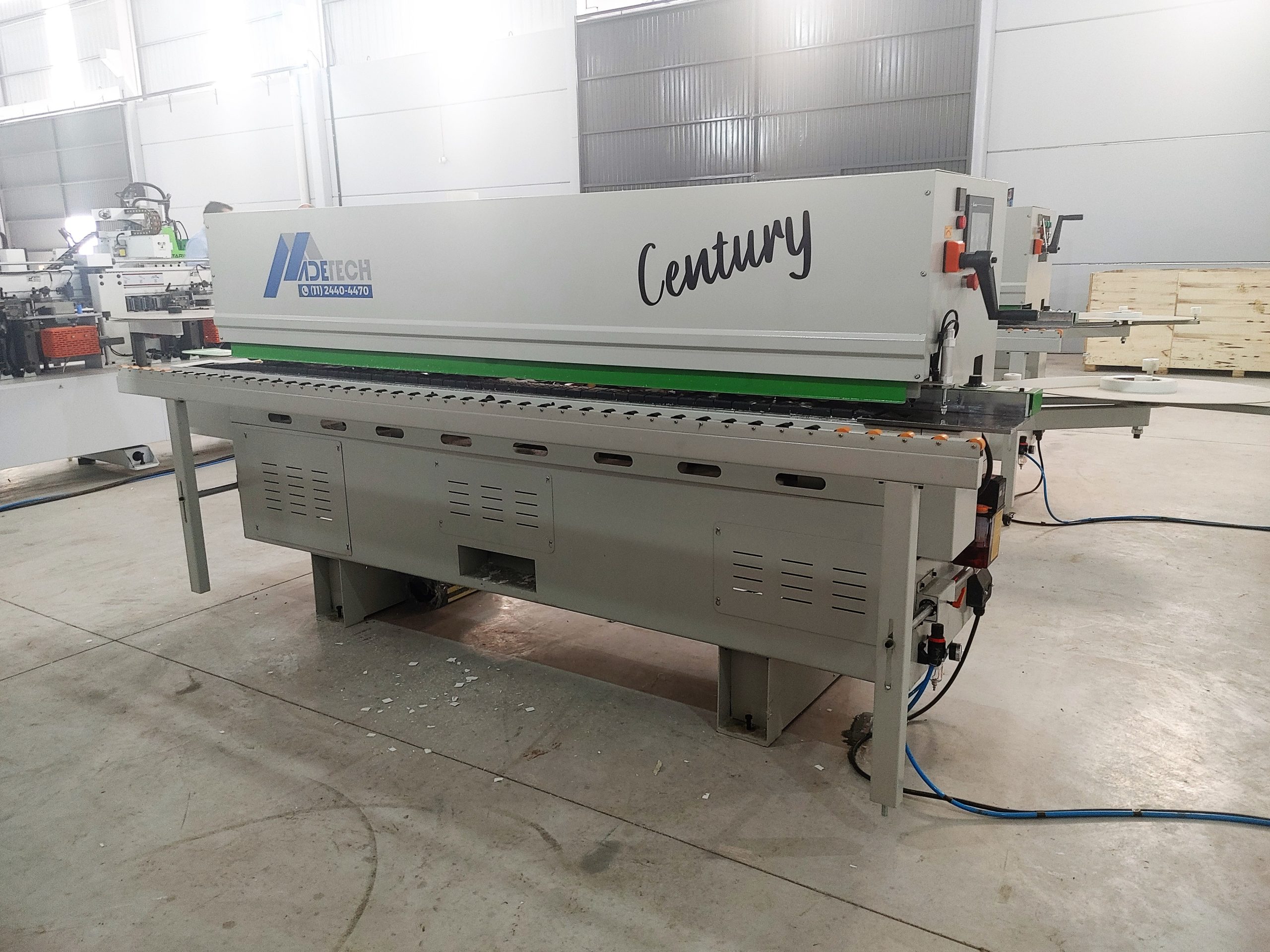 A coladeira de bordos automática Madetech modelo Century 5GS é composta pelos grupos de Colagem, Destopador, Refilador, Raspador e Polidor, possui aquecimento na régua de entrada (exclusivo no segmento) o que melhora substancialmente a qualidade da colagem em dias frios e úmidos além da velocidade de trabalho de 16 mts por minuto, o que entrega excepcional produtividade (a melhor entre seus concorrentes), capaz de colar painéis com espessura de 10mm à 45mm e fitas de bordo com espessuras de 0,45mm à 3mm. Dotada de lubrificação automática que reduz significativamente o desgaste de seus componentes e necessidade de manutenções com consequente aumento da vida útil do equipamento.