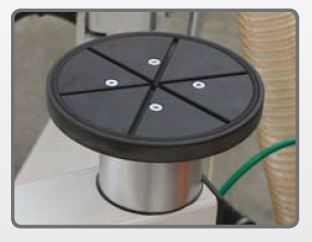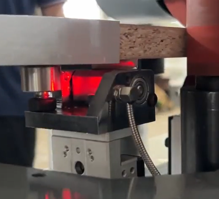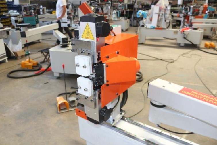 A máquina conta com motor de 3 kW e velocidade de avanço regulável, que pode ser ajustada entre 3.500 mm/min (baixa) e 7.000 mm/min (alta), garantindo produtividade de acordo com a necessidade do operador.